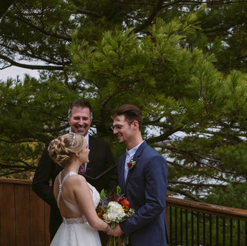 The corner of The Lookout is cut into the majestic pine and cedar boughs allowing for a stunning backdrop for photos. The rich dark woods of the deck, overlook the cascading lawns and natural landscapes of the property. This area allows for a grand entrance as you make your way to your guests below.